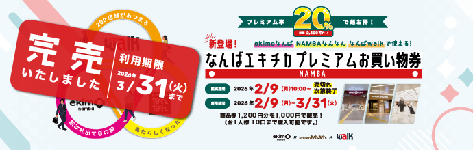 新登場!なんばエキチカ プレミアムお買い物券 販売のご案内