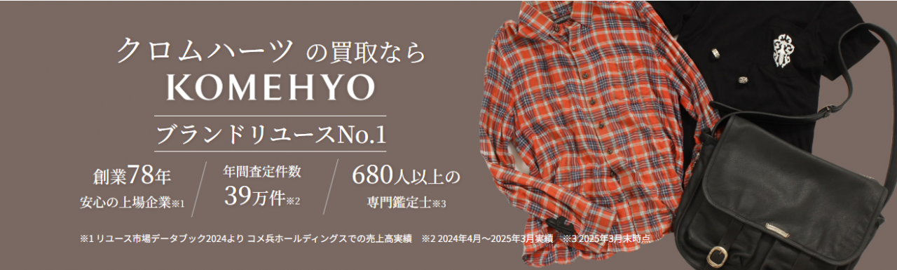 全国に直営店舗のあるKOMEHYOだからこそ、クロムハーツの高価買取が可能です。専任の熟練鑑定士がお客様の大切なお品物を正確に、そして誠実に査定させていただきます。ぜひお気軽にご利用、ご相談くださいませ。